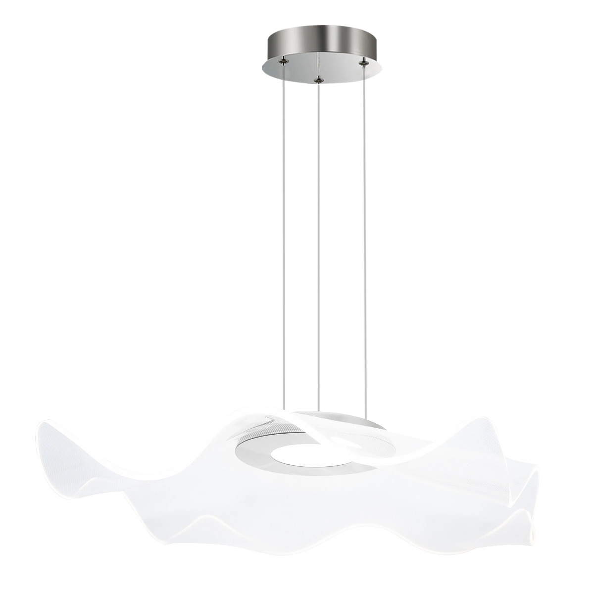 Its unusual lampshade resembles a veil blown in the midday sun, onto which the light distinctly diffuses. The lampshade is made of transparent acrylic with a fine pattern. The delicate white dots not only decorate it, but also scatter the source of LED light over the entire surface. The acrylic lampshade is much easier to clean, more durable, and safer than its glass cousins. Lamps from the VELO collection are an excellent, long-lasting, energy-saving option for brightening up any interior. The collection includes pendant and ceiling lamps, with a diameter of 50 cm and come in two different shapes (VELO No. 1 and No. 2). The colours are white-silver and white-gold.