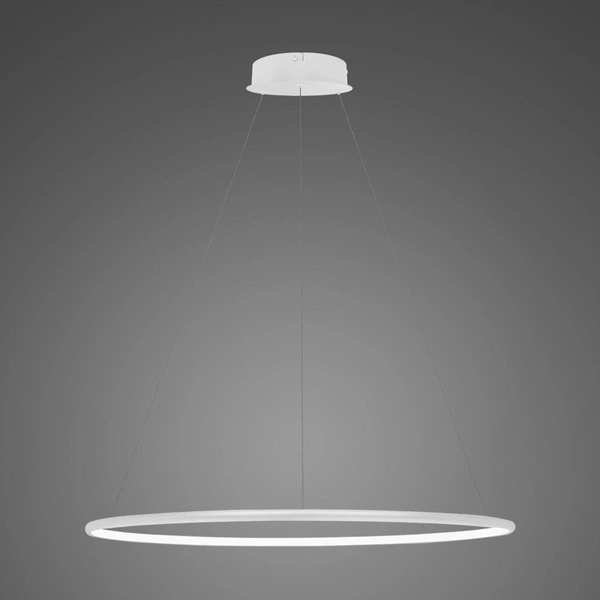 The Ledowe Okręgi No.1 pendant lamp with a diameter of 80 cm is a proposal for those who appreciate minimalist style and innovative lighting solutions. Its white color perfectly complements bright interiors, emphasizing their spaciousness and elegance. It is ideal for the living room, where it creates a unique atmosphere during evening family gatherings, or in a spacious kitchen above an island, providing bright and even light for everyday activities. It is also an excellent choice for modern offices or reception areas, where it highlights the prestige and professional character of the space.