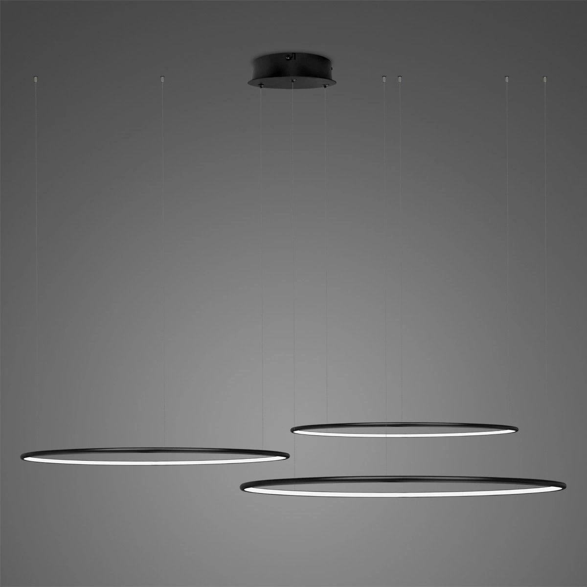 The Ledowe Okręgi No.3 pendant lamp with a diameter of 80 cm is an excellent choice for lovers of contemporary interiors who seek functional and stylish lighting solutions. The black finish gives it an elegant look, making it a perfect fit for spacious living rooms, modern offices, or restaurants. The use of high-quality aluminum as the dominant material ensures durability and resistance to damage, while silicone elements provide lightness and subtlety to the form. This lamp works perfectly above a dining table, in a hotel reception area, or as the main source of light in a minimalist loft.