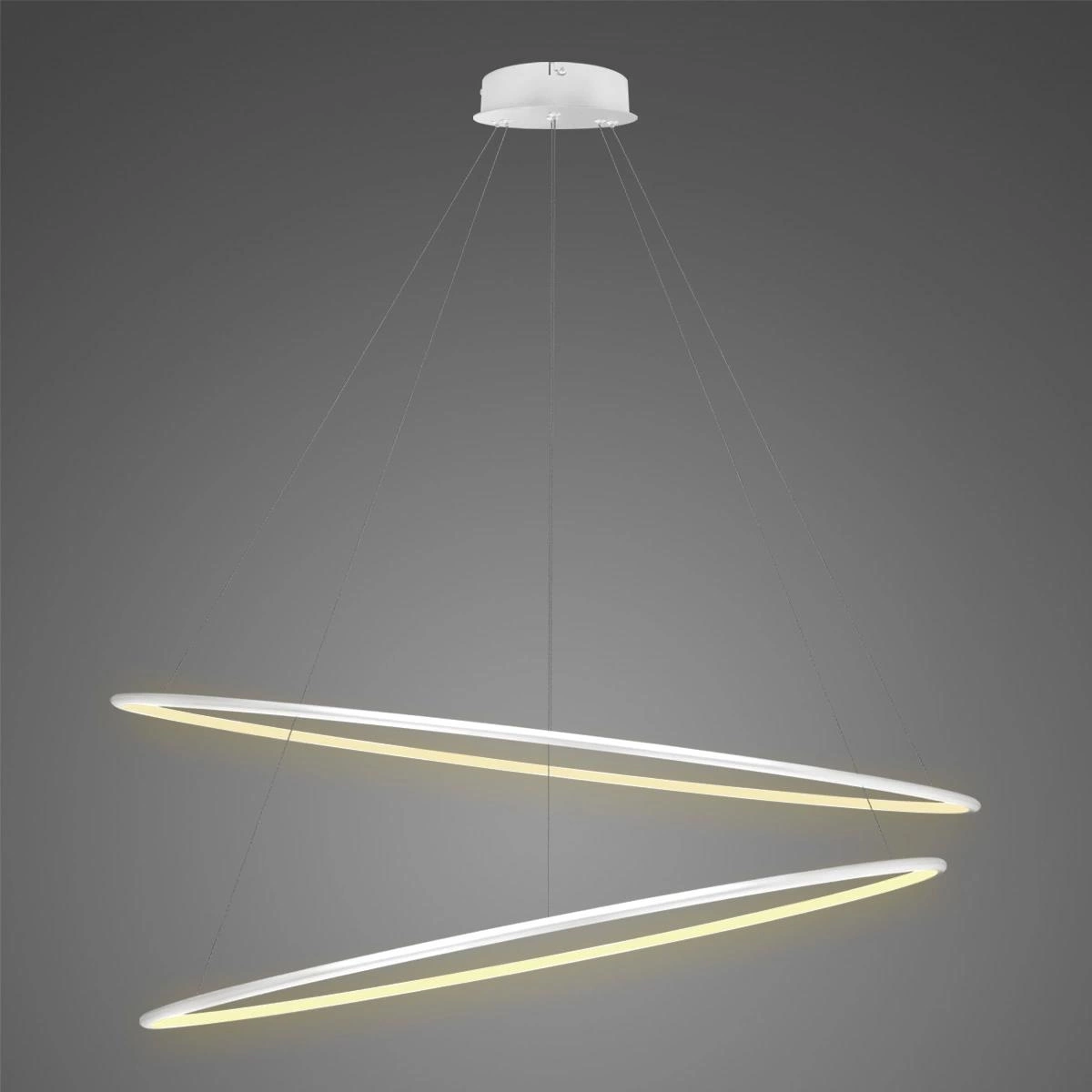 The Ledowe Okręgi No.2 lamp, measuring 120 cm in length, is an excellent choice for those who appreciate a minimalist, modern style and high lighting functionality. The white color of the structure allows the fixture to seamlessly blend into a variety of interior designs – from spacious living rooms to elegant offices. Its unique shape, based on two geometric circles, makes the lamp not only a source of light but also an impressive decorative element. It works perfectly both in a home living room and a modern reception area, highlighting the character of the space.