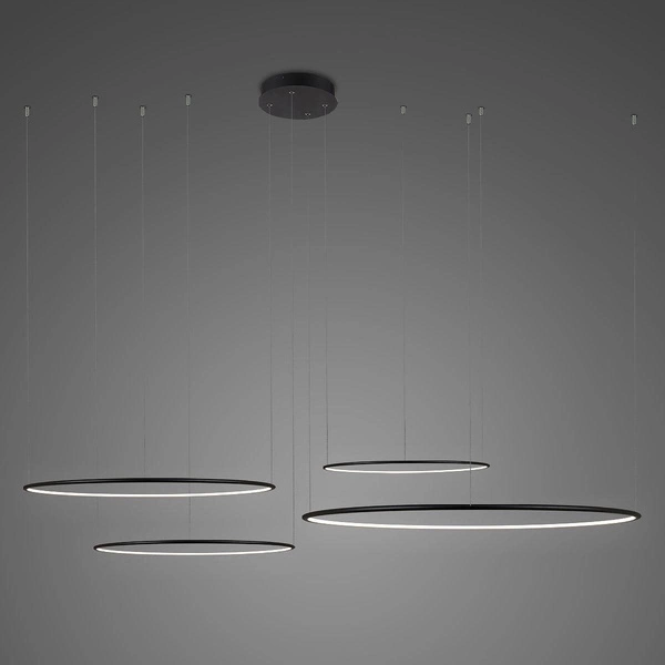 The Ledowe Okręgi No.4 pendant lamp from ALTAVOLA DESIGN is a proposal for those who value modernity, style, and practical lighting solutions for interiors. Its minimalist black form fits perfectly with contemporary design trends, highlighting the character of living rooms, offices, or dining areas alike. Made from high-quality aluminum and silicone, the lamp is not only durable but also extremely elegant. Its unique shape—four luminous circles—catches the eye and makes it an original decorative element, easily replacing classic chandeliers or ceiling lights. For example, hung over a large dining table, it creates a unique atmosphere during family gatherings, while in a modern office it emphasizes the professional and designer character of the space.