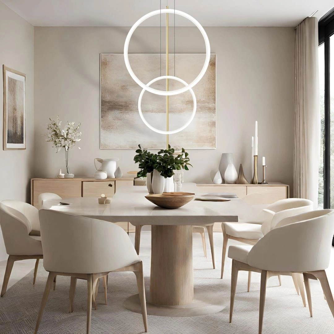 Thanks to its elegant design and functionality, the Linea No.5 lamp fits seamlessly into a variety of spaces. It can serve as the central lighting point in a dining room, accentuate a kitchen island, or provide the right light above a conference table in an office. Its minimalist form and combination of white and gold make it a perfect complement to both modern and classic interiors. It is an ideal choice for those who appreciate the combination of aesthetics, comfort, and modern technology in everyday use.