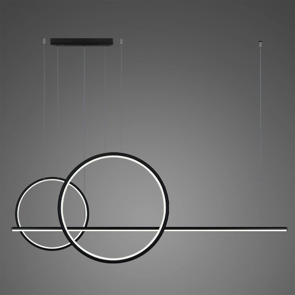 This ultramodern lamp has been equipped with the energy-saving SMD LED technology. Delicate circles made of aluminium and silicone shine with a strong and comfortable natural light. This means that the lamps are perfect for residential interiors, offices and hotels alike. The manufacturer's portfolio includes circles with diameters of up to 230 cm. The lamps are available in 8 basic colours: black, white, silver, gold, copper, and rose gold. On request, the manufacturer supplies all the colours in the RAL colour standard. The lamps have an IP44-protection certificate which means they are waterproof, providing high- level protection, e.g. they can be used at swimming pools, in bathrooms and terraces. They have replaceable LED modules. They can also be purchased in a version with a dimmer and/or compatible with the DALI system.