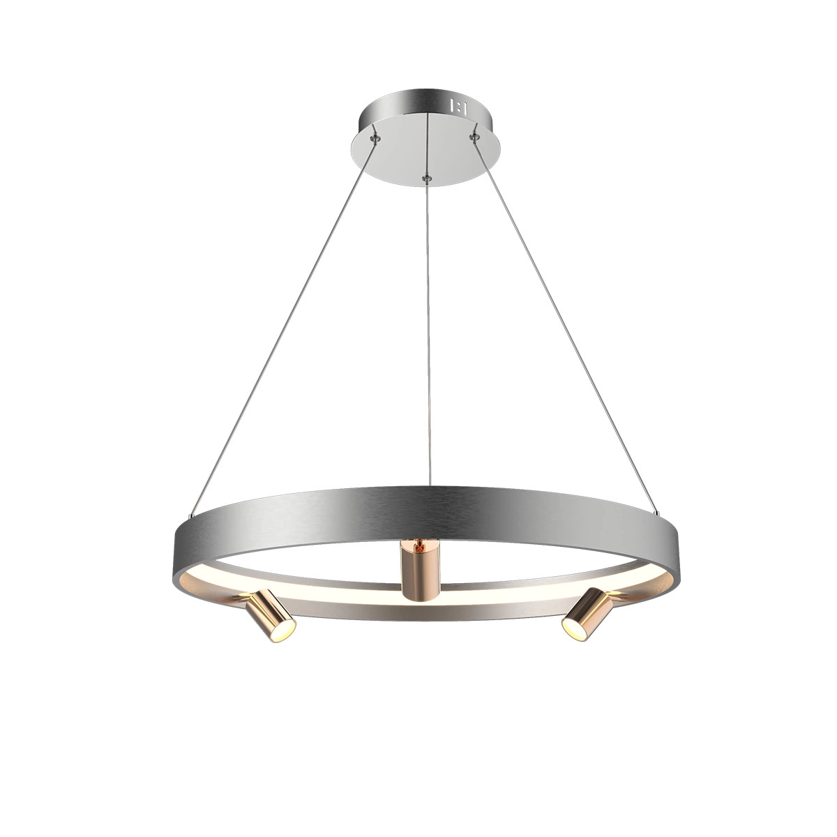 Ta lampa nie tylko zapewnia światło, ale także tworzy wyjątkową dekorację. Jej oprawa to połączenie szczotkowanego aluminium i delikatnego odcienia różowego złota. Ten elegancki kontrast doda luksusowego akcentu do każdego wnętrza.