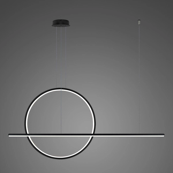 Die LED-Hängeleuchte Linea No.2 B 80cm schwarz 3k von ALTAVOLA DESIGN ist eine ideale Wahl für Liebhaber minimalistischer und zugleich effektvoller Lösungen in der Inneneinrichtung. Ihre elegante schwarze Farbe in Kombination mit der geometrischen Kreisform fügt sich perfekt in moderne Wohn- und Büroräume ein. Die integrierte LED-Lichtquelle mit 45W Leistung sorgt nicht nur für hervorragende Beleuchtung, sondern auch für erhebliche Energieeinsparungen, was sich in niedrigeren Stromrechnungen widerspiegelt. Die Leuchte eignet sich sowohl über dem Esstisch als auch im Wohnzimmer oder im offenen Wohnbereich und schafft eine gemütliche, aber dennoch stilvolle Atmosphäre.