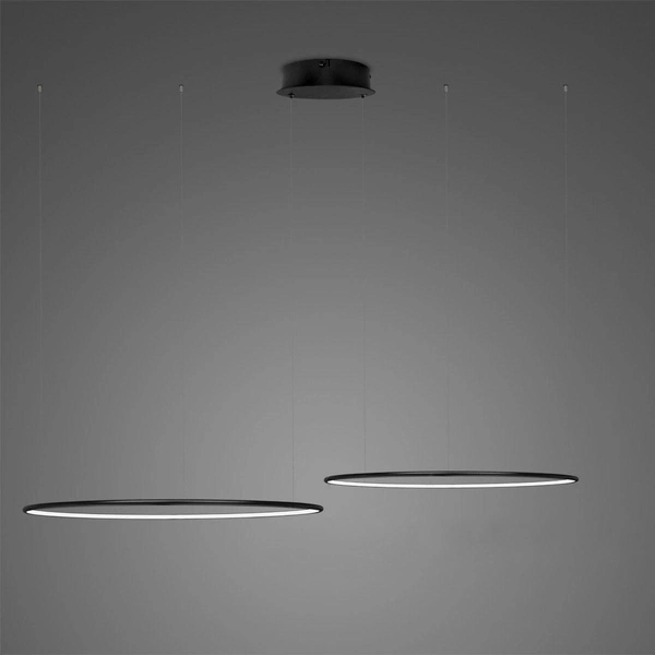 Diese hochmoderne Lampe verbirgt die SMD-LED-Technologie, wodurch sie auch energiesparend beleuchtet wird. Zarte Aluminium-Silikon-Kreise leuchten mit starkem, sehr freundlichem, sanftem Tageslicht. Dies bedeutet, dass die Lampen sowohl für Wohnräume als auch für Büros und Hotels geeignet sind. Das Angebot des Herstellers umfasst Kreise mit einem Durchmesser von bis zu 230 cm. Die Lampen sind in 8 Grundfarben erhältlich: Schwarz, Weiß, Silber, Gold, Kupfer und Roségold. Auf Anfrage bietet der Hersteller alle Farben gemäß der RAL-Palette an. Die Lampen haben ein IP44-Schutzzertifikat, was bedeutet, dass sie wasserdicht sind und ein sehr hohes Schutzniveau aufweisen, z. B. zum Aufhängen in Schwimmbädern, Badezimmern oder auf Terrassen. Die Lampen haben austauschbare LED-Module. Sie können auch in einer Version mit Dimmer erworben werden und / oder kompatibel mit dem DALI-System.