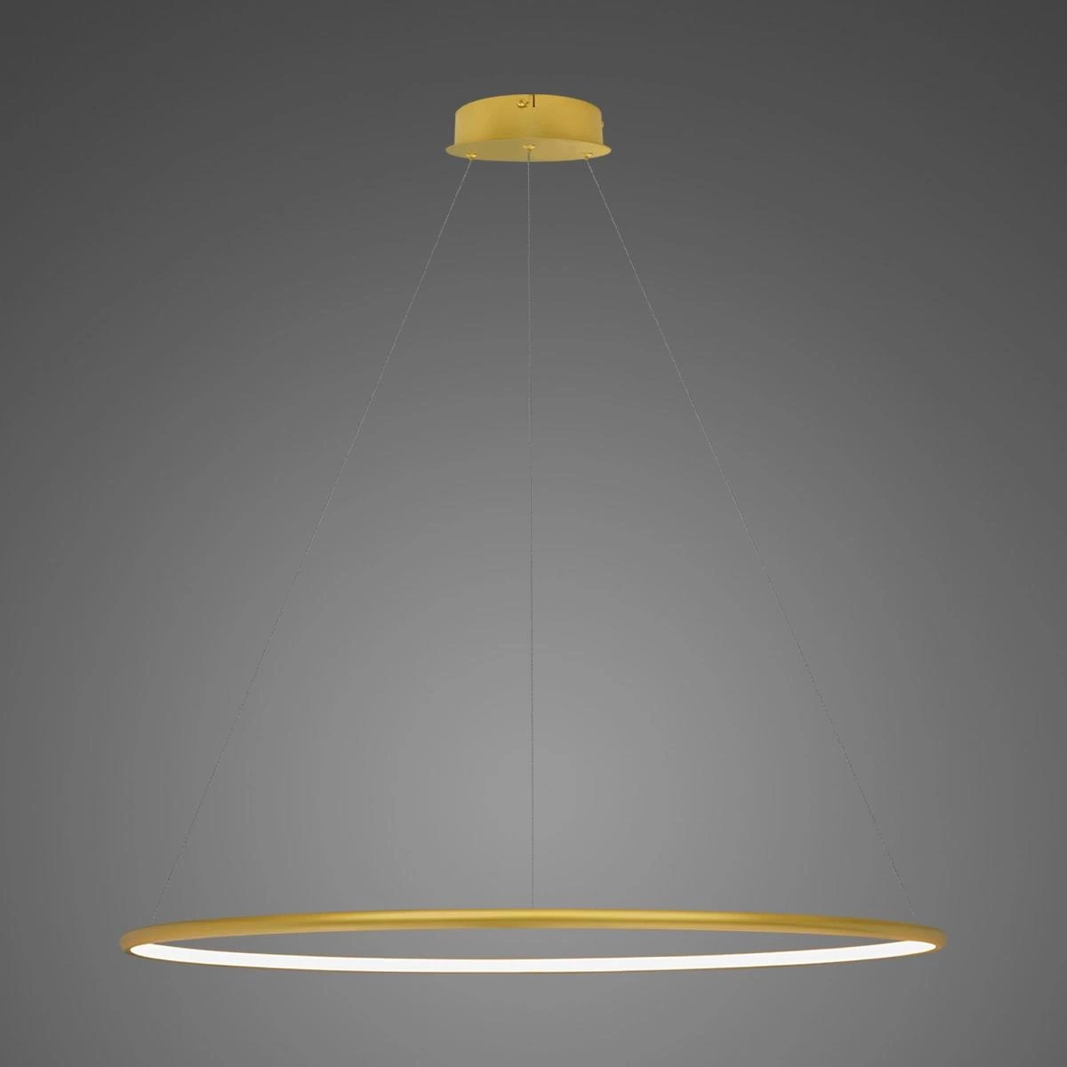Die LED-Pendelleuchte Ledowe Okręgi No.1 mit einem Durchmesser von 100 cm in Gold ist die perfekte Wahl für alle, die den modernen Charakter ihres Wohnzimmers, Esszimmers oder Büros betonen möchten. Ihr minimalistisches und zugleich effektvolles Design zieht die Blicke auf sich und schafft in jedem Raum eine einzigartige Atmosphäre. Die goldene Ausführung harmoniert hervorragend sowohl mit hellen als auch mit dunkleren Einrichtungskonzepten und verleiht dem Interieur Eleganz und Luxus. Das Produkt eignet sich ideal als Hauptlichtquelle über dem Esstisch, im großzügigen Wohnzimmer oder im repräsentativen Empfangsbereich eines Unternehmens.