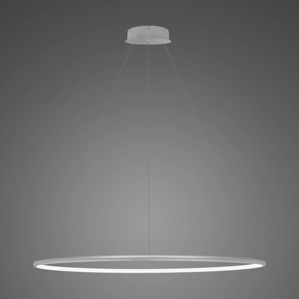 Die LED-Hängeleuchte Ledowe Okręgi No.1 mit einem Durchmesser von 100 cm ist ein außergewöhnliches Beleuchtungselement, das durch ihr minimalistisches, modernes Design und die dezente silberne Farbgebung sofort ins Auge fällt. Ihre runde Form und die Verarbeitung aus Aluminium machen sie zur idealen Ergänzung für sowohl industriell eingerichtete Innenräume als auch für moderne oder skandinavische Wohnstile. Die Leuchte eignet sich hervorragend als zentrales Beleuchtungselement über dem Esstisch, im großzügigen Wohnzimmer sowie im Empfangsbereich eines Büros oder einer Hotellobby, wo sie Eleganz und Modernität der Einrichtung unterstreicht.