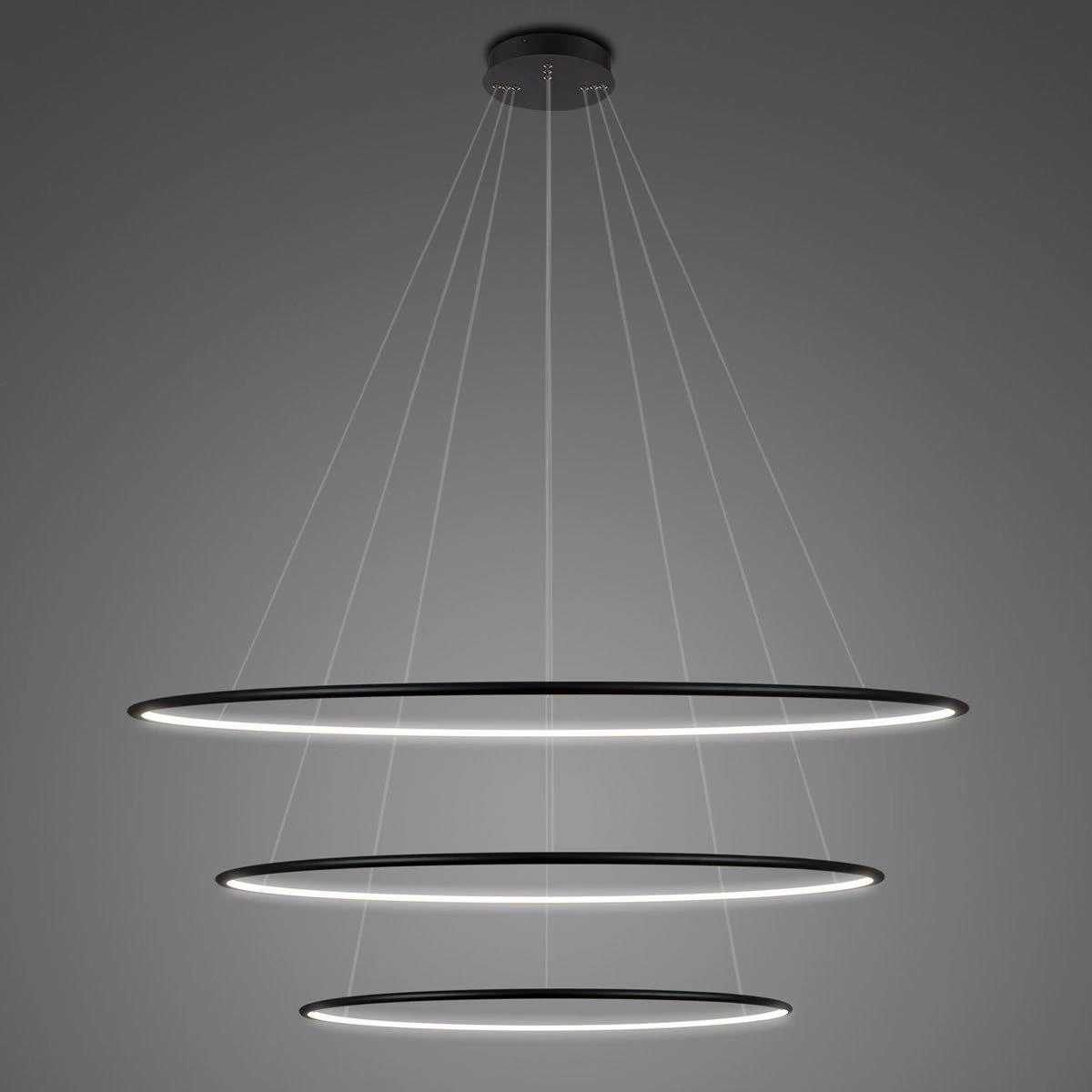 Die LED-Pendelleuchte Ledowe Okręgi No.3 100cm 4k schwarz Dali der Marke ALTAVOLA DESIGN ist eine perfekte Wahl für alle, die nach außergewöhnlichen Beleuchtungslösungen suchen. Ihr minimalistisches, aber dennoch effektvolles Design sorgt dafür, dass sie sowohl in modernen Wohnzimmern als auch in eleganten Büroräumen hervorragend zur Geltung kommt. Das tiefe Schwarz der Aluminiumkonstruktion in Kombination mit dem dezenten LED-Licht verleiht jedem Raum einen ausdrucksstarken Charakter und unterstreicht Stil sowie Individualität. Ein Beispiel für die alltägliche Nutzung ist die Beleuchtung des Esstisches bei Familientreffen oder das Schaffen einer stimmungsvollen Relaxzone im Wohnzimmer.