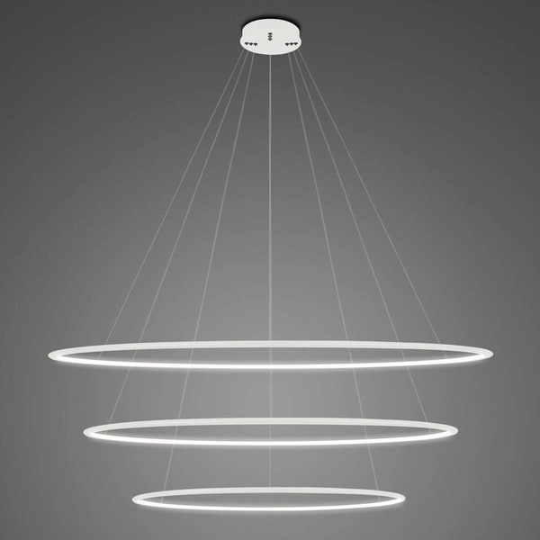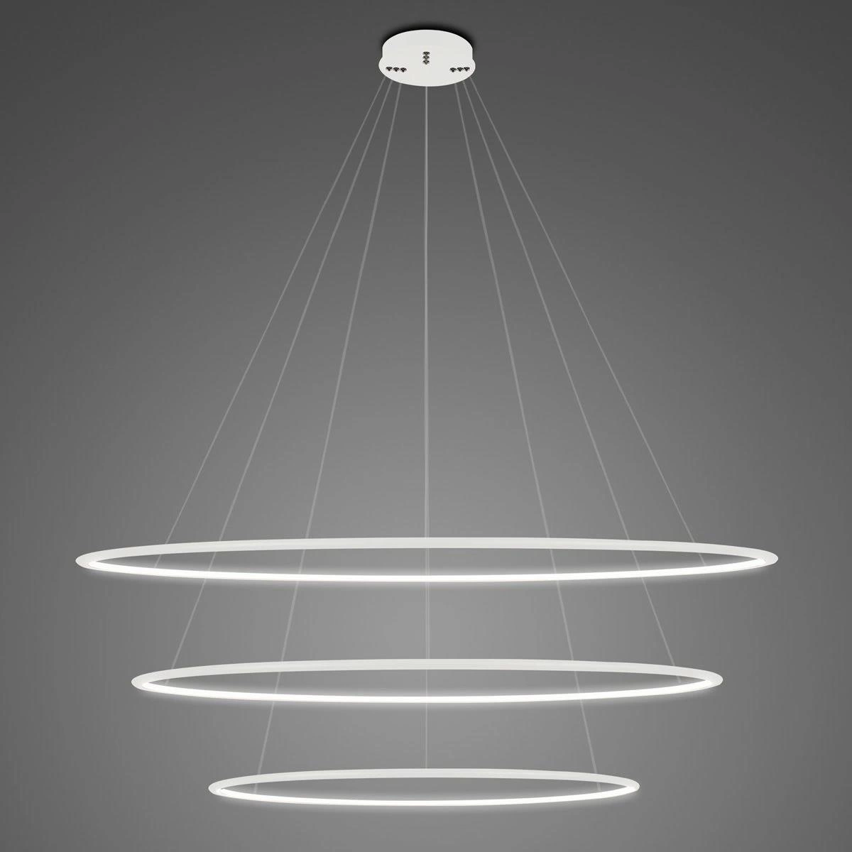 Die LED-Hängeleuchte Ledowe Okręgi No.3 120cm 4k weiß Dali ist die perfekte Wahl für alle, die modernen Stil und praktische Lösungen in der Inneneinrichtung schätzen. Ihre minimalistische Form und die neutrale, weiße Farbe machen sie sowohl in privaten als auch in gewerblichen Räumen wie Büros oder Konferenzsälen zu einem echten Blickfang. Dank der drei effektvollen LED-Ringe dient die Leuchte nicht nur als Lichtquelle, sondern auch als Designer-Akzent, der den Charakter jedes Raumes unterstreicht. Ideal geeignet für Wohnzimmer, Esszimmer, Küchen sowie moderne Arbeitszimmer und Coworking-Spaces.