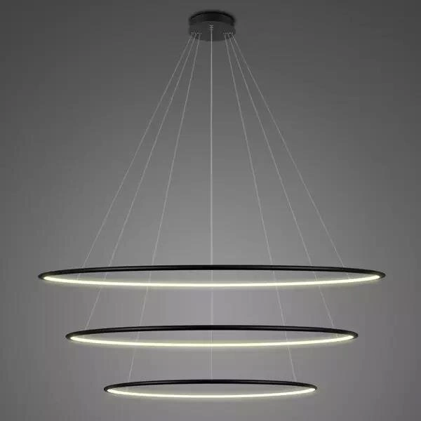 Die LED-Hängeleuchte Ledowe Okręgi No.3 120cm 4k Schwarz Dali ist eine Empfehlung für Liebhaber minimalistischer und zugleich eindrucksvoller Lösungen. Ihre runde Form mit einem Durchmesser von beeindruckenden 120 cm fügt sich perfekt in moderne Wohntrends ein und unterstreicht die Großzügigkeit und Eleganz des Raumes. Die schwarze Farbgebung verleiht der Leuchte Ausdruckskraft, sodass sie nicht nur eine Lichtquelle, sondern auch eine außergewöhnliche Raumdekoration ist. Die Leuchte besteht aus hochwertigem Aluminium und Silikon, was für Langlebigkeit und einfache Reinigung sorgt. Beispielsweise eignet sie sich hervorragend für das Wohnzimmer über einem großen Tisch, im geräumigen Esszimmer oder in einem stilvollen Büro, wo sowohl Funktionalität als auch Ästhetik zählen.