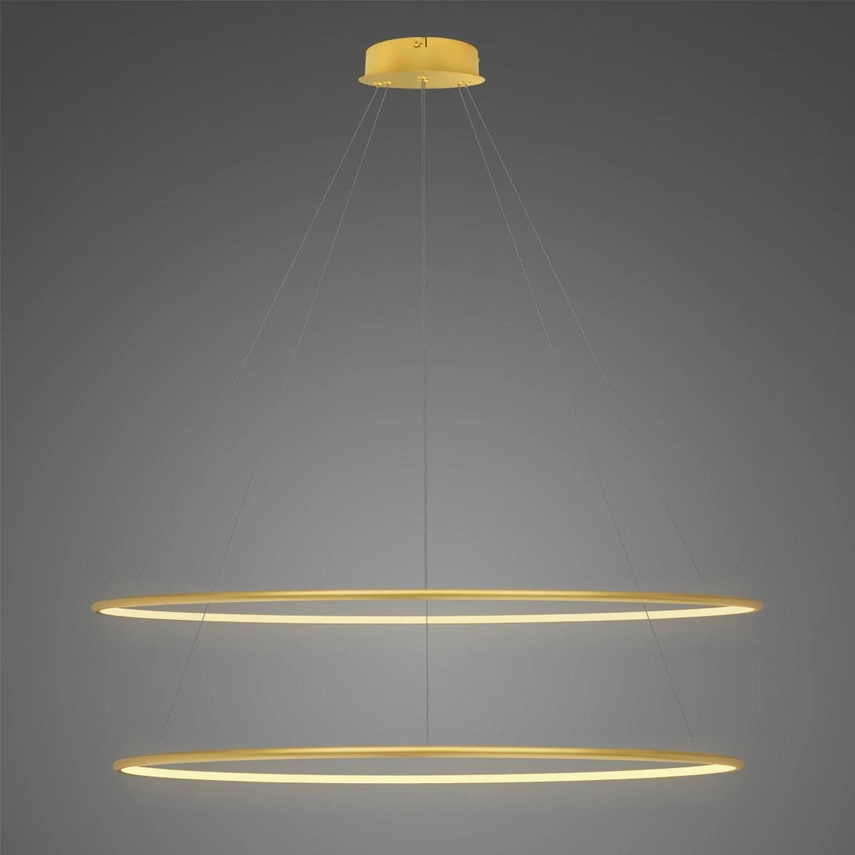 Die LED-Leuchte Okręgi No.2 mit einer Länge von 120 cm ist eine Empfehlung für alle, die modernes Design und hohe Funktionalität schätzen. Die goldene Farbgebung und die minimalistische Form sorgen dafür, dass dieses Modell sowohl in großzügigen Wohnzimmern als auch in eleganten Essbereichen hervorragend zur Geltung kommt. Ihre Präsenz unterstreicht sofort den Charakter des Raumes und verleiht ihm Prestige und Stil. Im Alltag eignet sie sich als Hauptlichtquelle über dem Esstisch, der Kücheninsel oder in der Relaxzone und schafft eine gemütliche, harmonische Atmosphäre.