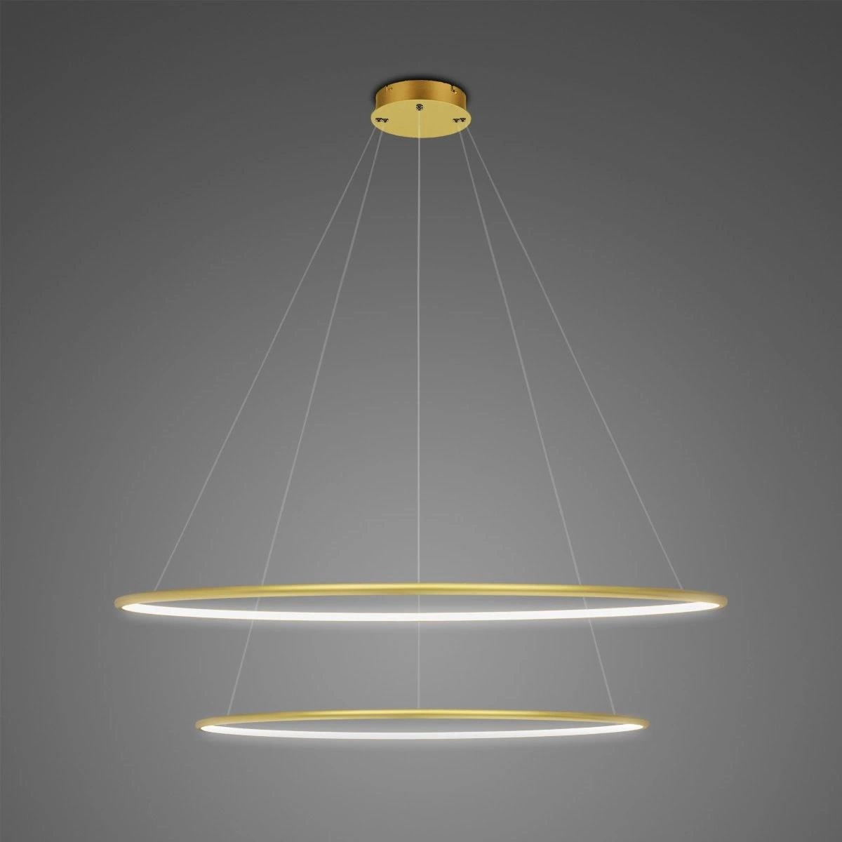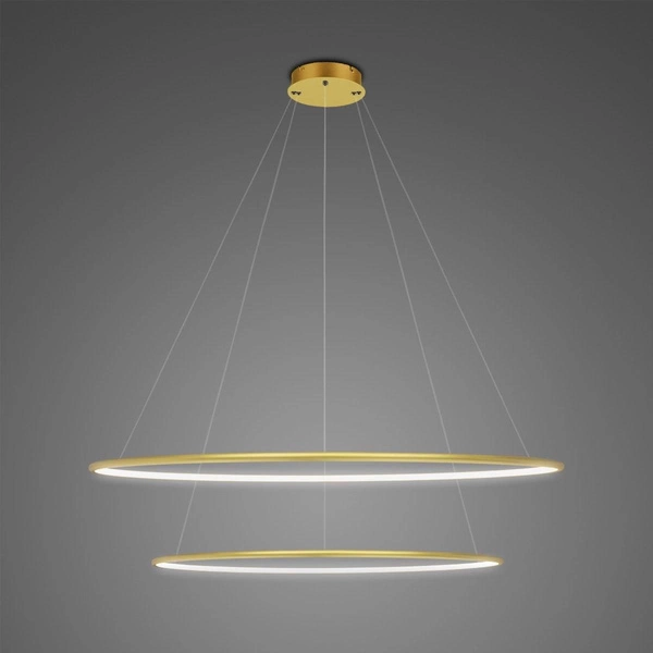 Die LED-Leuchte Okręgi No.2 mit einem Durchmesser von 80 cm ist die ideale Wahl für alle, die Wert auf ein elegantes Interieur und moderne technologische Lösungen legen. Das goldene Finish der Lampe passt hervorragend sowohl zu klassischen als auch zu minimalistischen Einrichtungen und verleiht dem Raum einen außergewöhnlichen Glanz und Prestige. Dank der höhenverstellbaren Aufhängung eignet sich das Produkt perfekt sowohl über dem Esstisch als auch im großzügigen Wohnzimmer und lässt sich individuell an die Bedürfnisse der Nutzer anpassen.