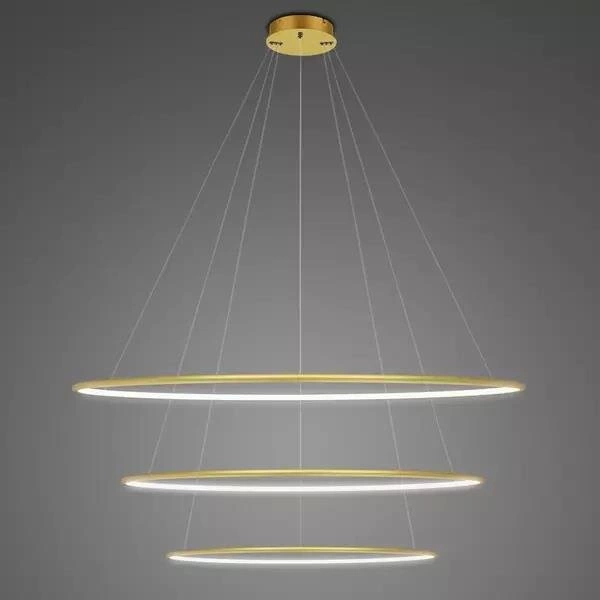 Die Hängeleuchte Ledowe Okręgi No.3 Φ100 cm in 2700k Gold ist die perfekte Wahl für alle, die sowohl Wert auf Ästhetik als auch auf moderne technologische Lösungen legen. Die goldene Oberfläche und die minimalistische Form machen dieses Modell zu einer stilvollen Ergänzung für Wohnzimmer, Esszimmer oder Büroräume und verleihen jedem Interieur Eleganz und Stil. Dank der drei Lichtquellen mit einem beeindruckenden Durchmesser von 100 cm sorgt die Leuchte für eine gleichmäßige Ausleuchtung auch großer Räume und schafft eine gemütliche Atmosphäre bei Familienessen oder Treffen mit Freunden.